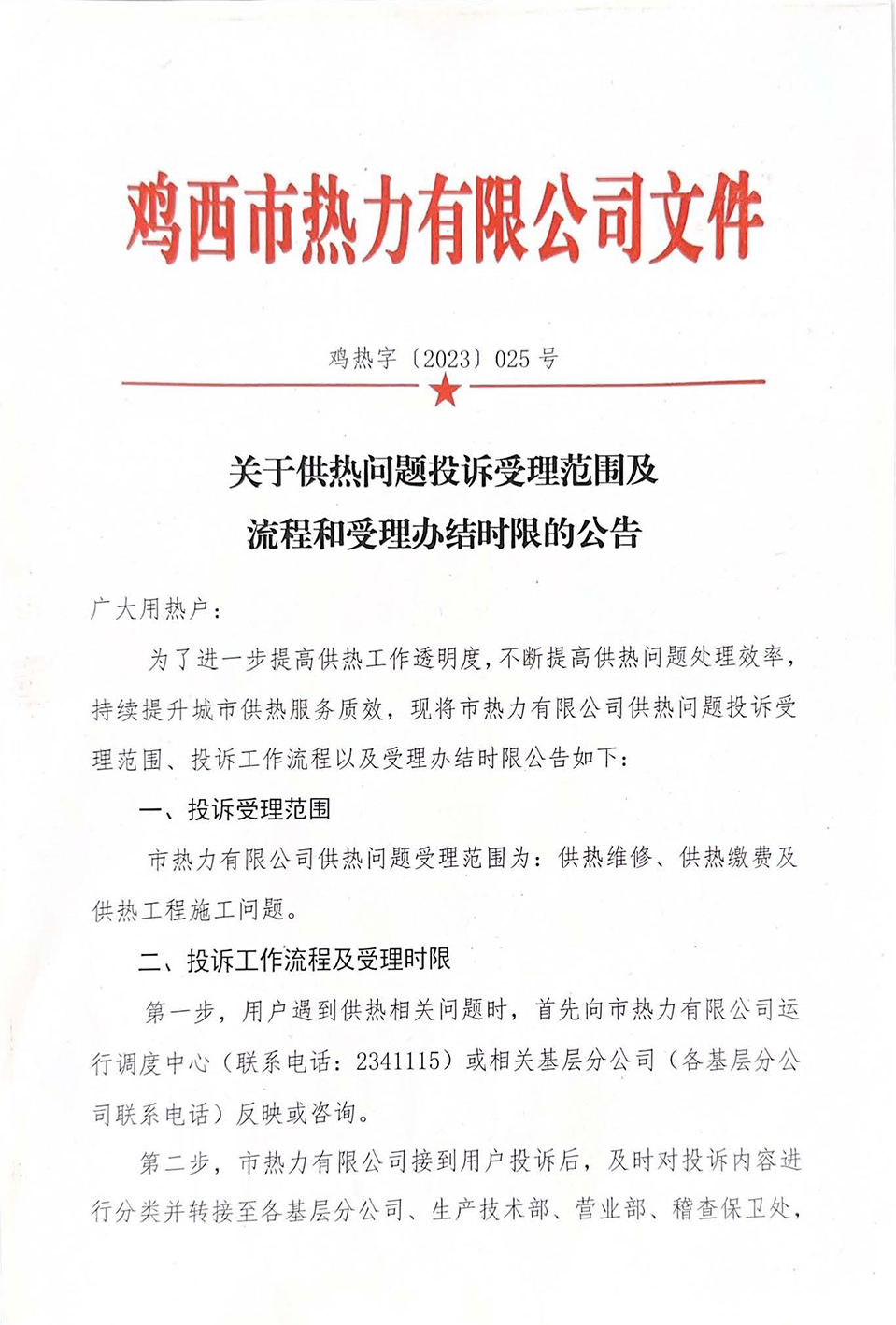 關(guān)于供熱問題投訴受理范圍及流程和受理辦結(jié)時(shí)限的公告